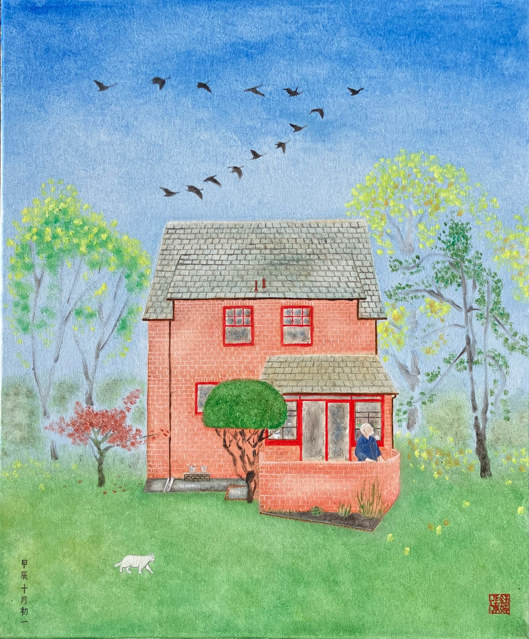 The man in the painting is wearing our embroidered CPO shirt "Plum Blossom".