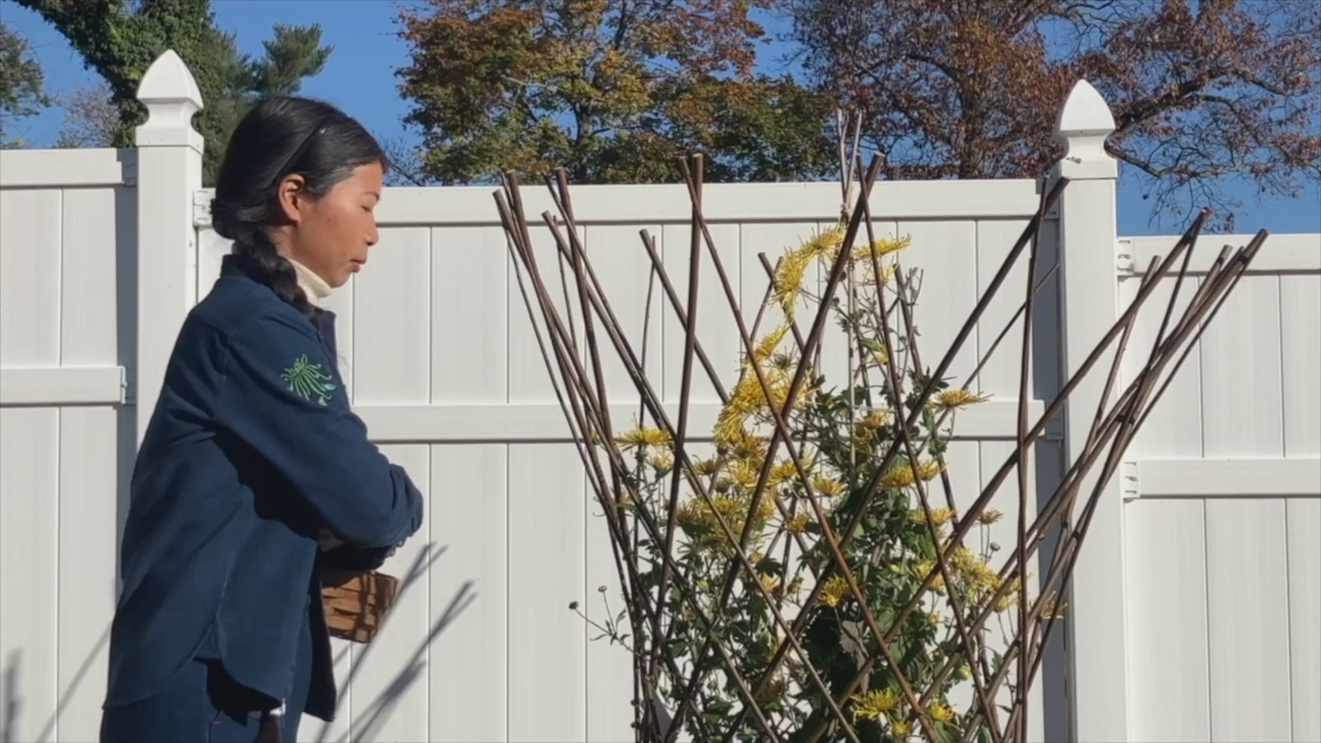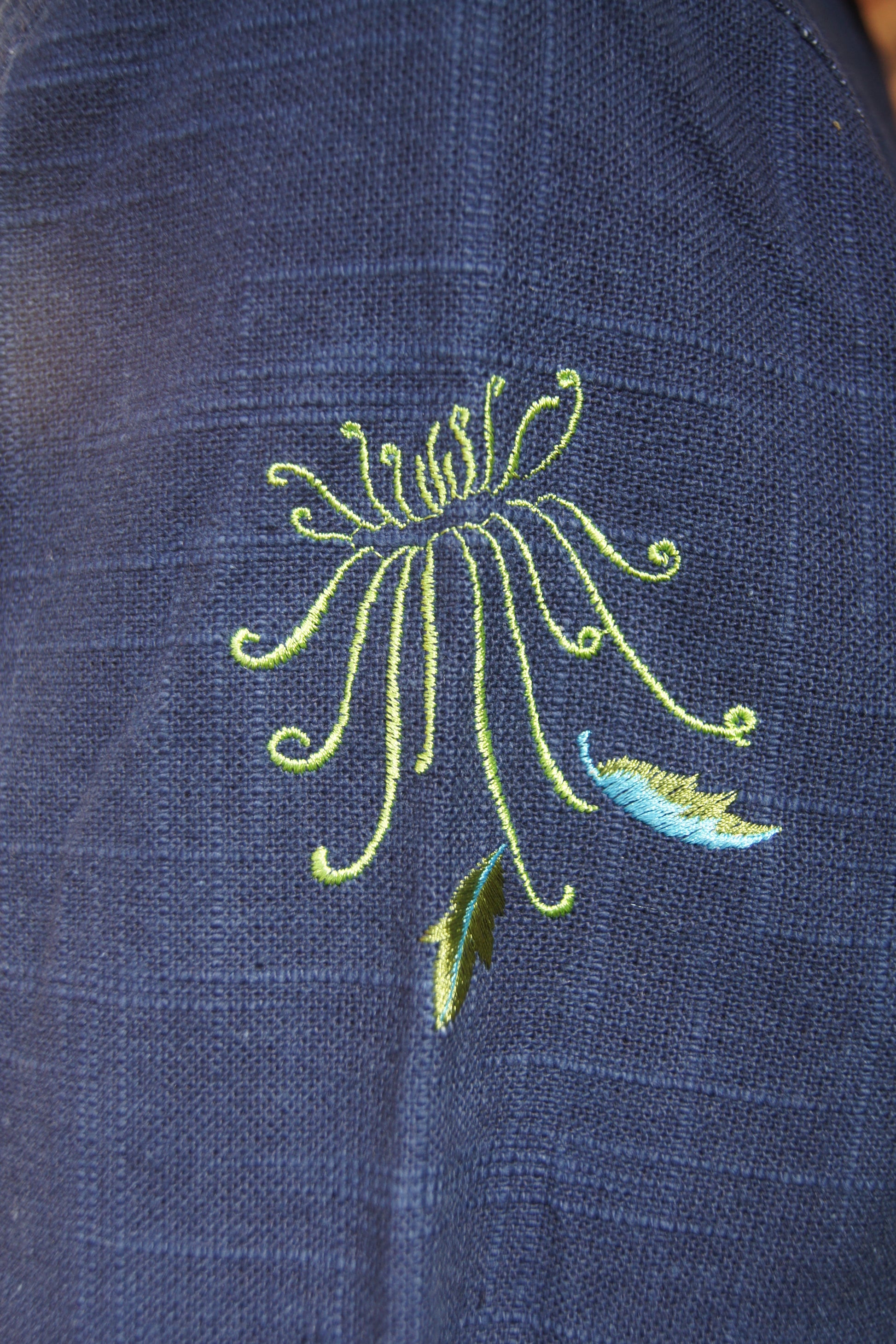 Embroidery: Inspired by the rare and beautiful chrysanthemum planted in our garden, which has a very exotic name: Crouching Dragon, Spring Dawn.