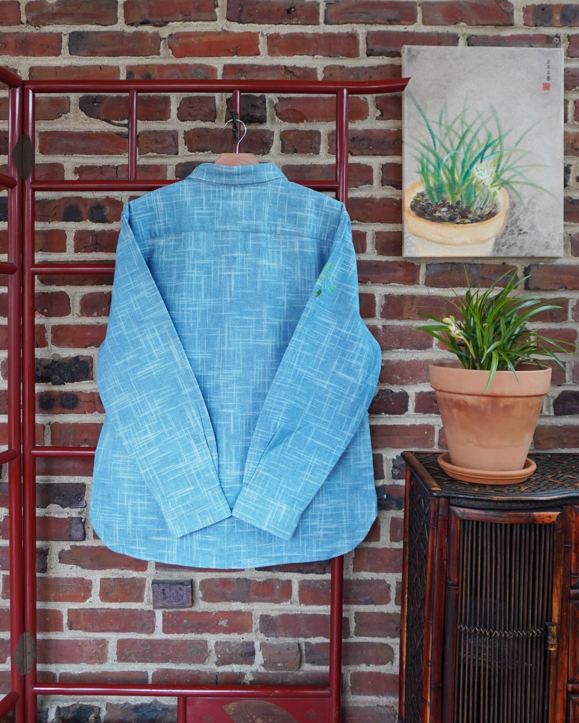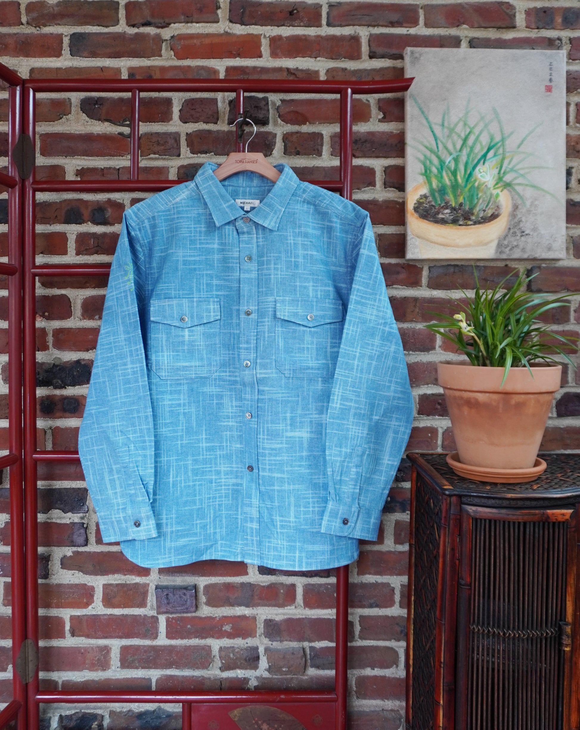 Fabric: Plant dyed fabrics are dyed entirely from naturally grown plants-no synthetic dyestuffs or additives. The origin plant, Persicaria tinctorial, has been used since ancient times as textile dyestuffs and natural medicine. So our plant dyes are good for our health and the health of the planet. Our sustainable alternative to denim, because of the natural origin of the dyes, will age beautifully and become your unique piece. Want to learn more about plant dyed fabrics? See our blog article “Back to the Future”- The story of Plant Dyes” in our Lotus & Michael blog.