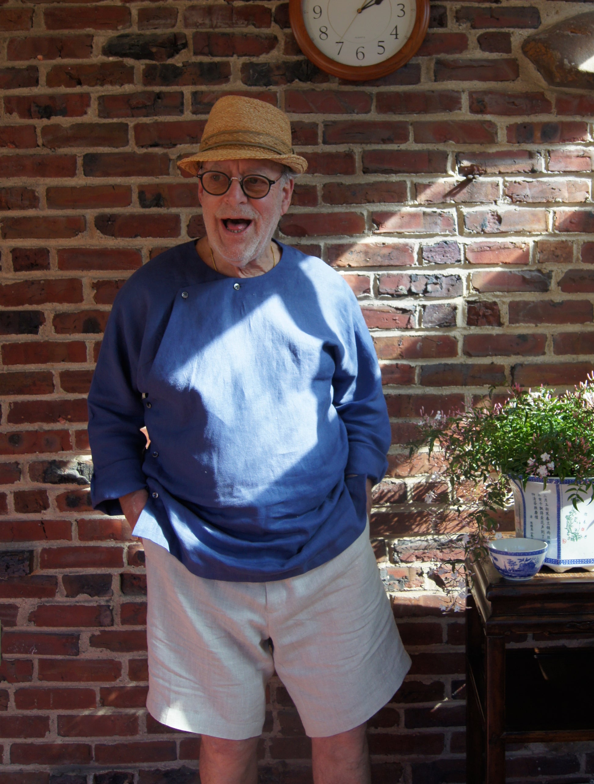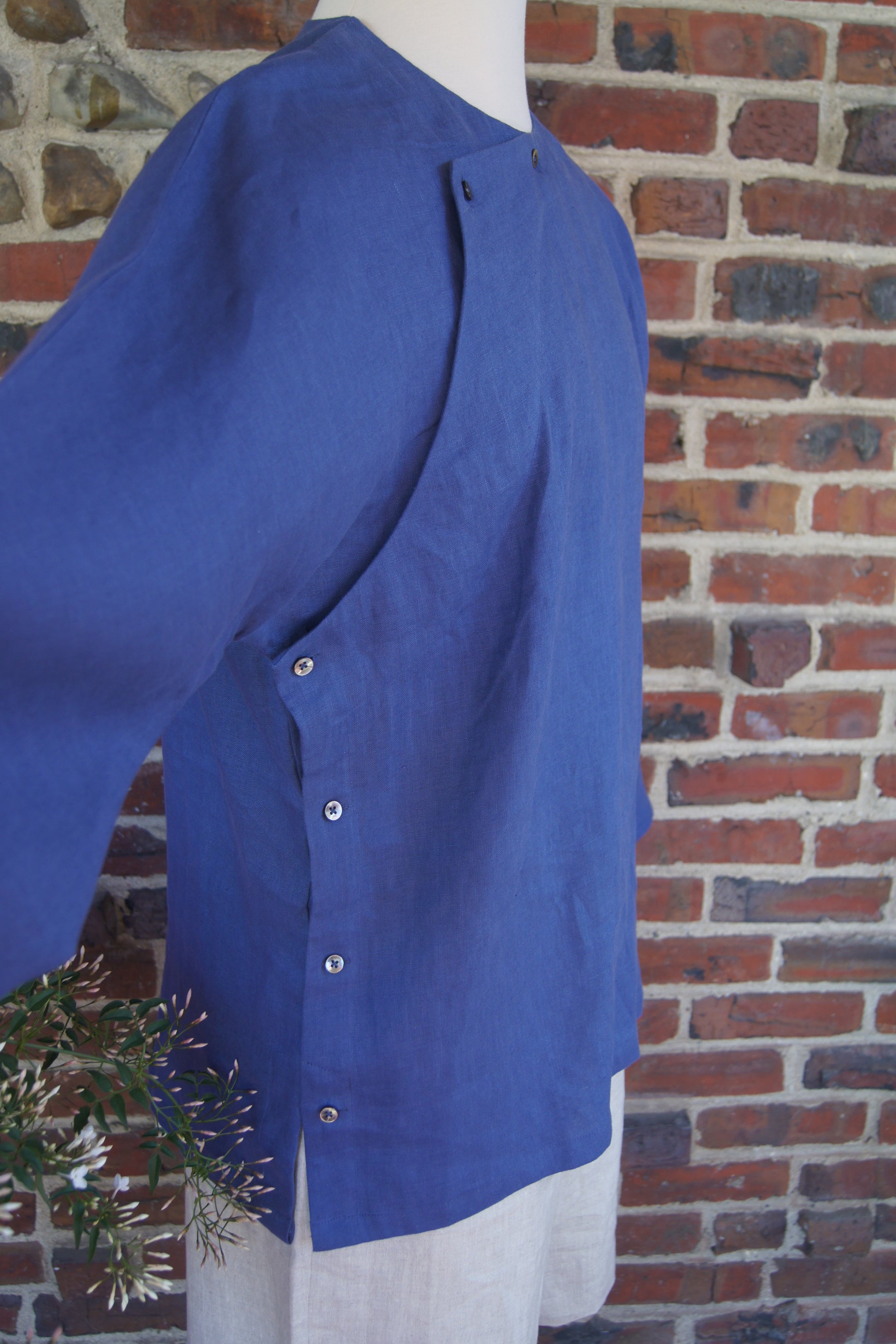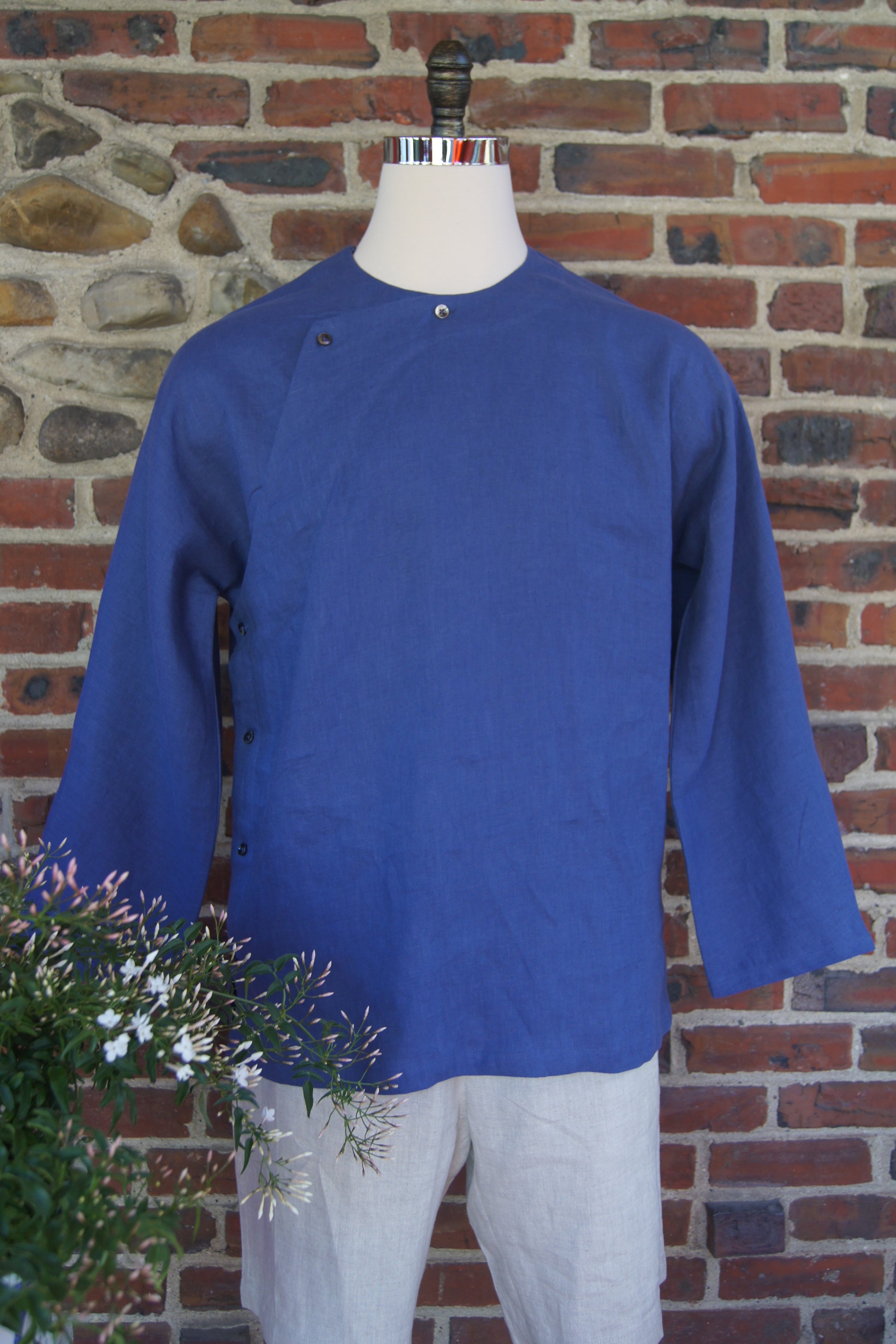 Material: Fabric: 100% Premium Linen; button: Mother of pearl