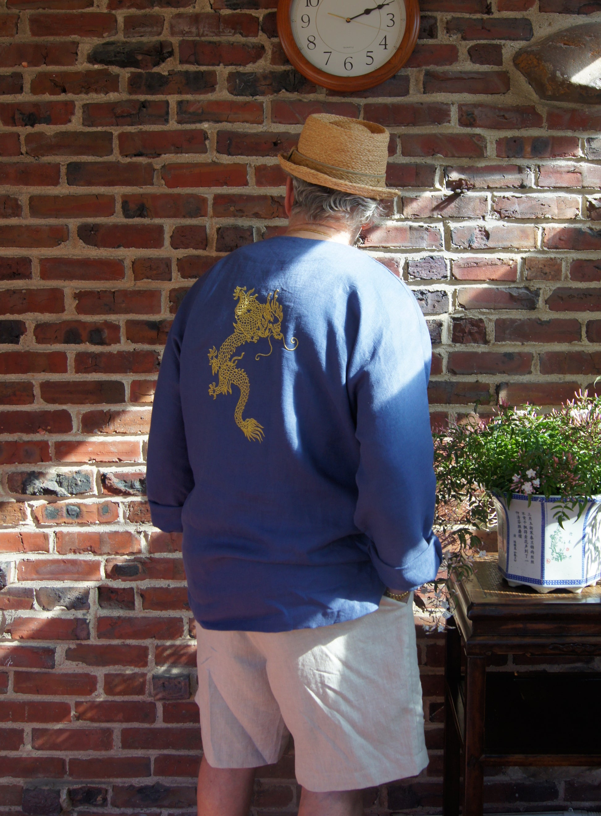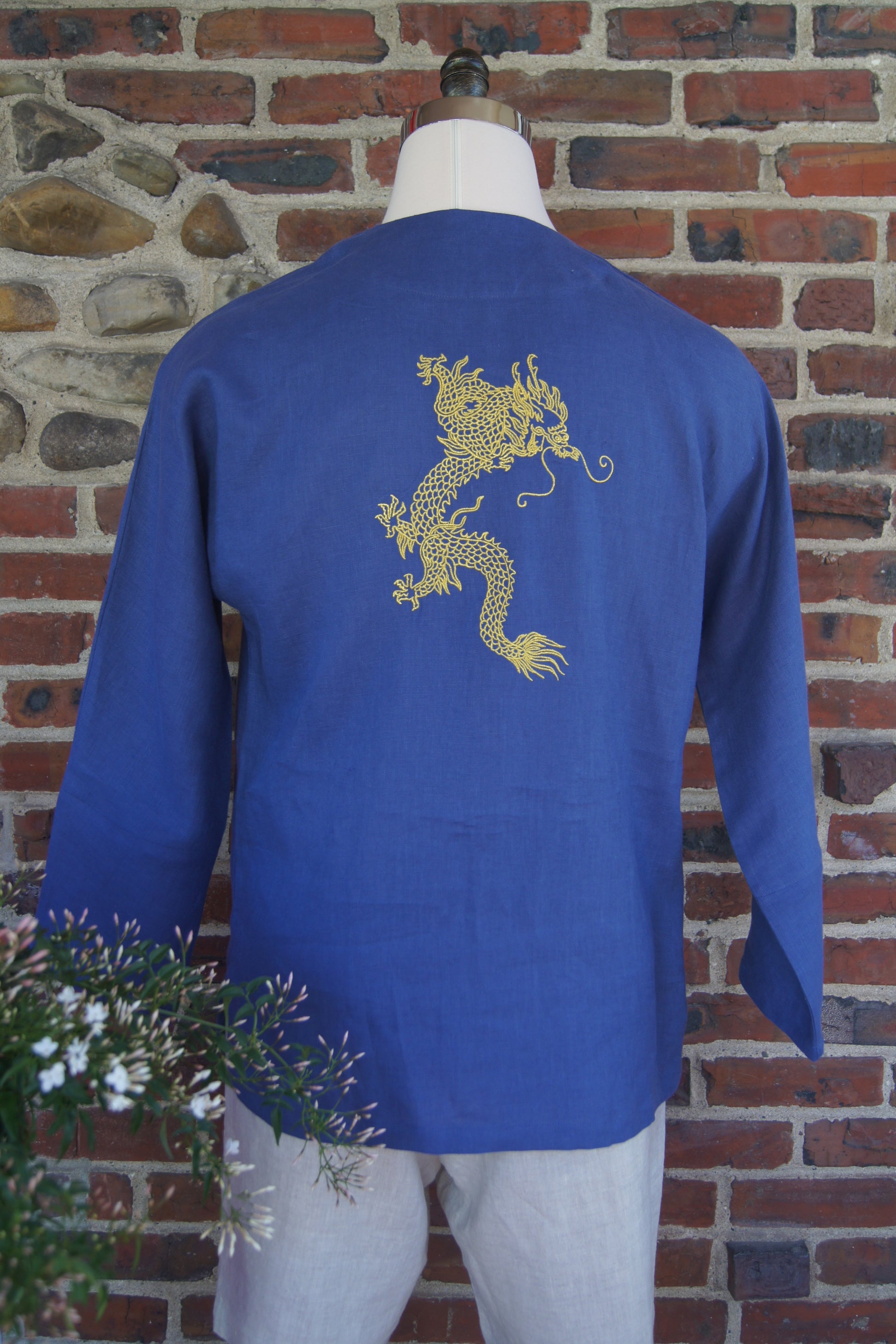 We have all watched Kungfu movies-- have you ever noticed what those martial artists wear? When the dojo world meets a man’s daily life, we created this unique piece for you, sporting a golden dragon embroidery on its back to add to the legend. We must say that it is amazingly comfortable when you wear it.