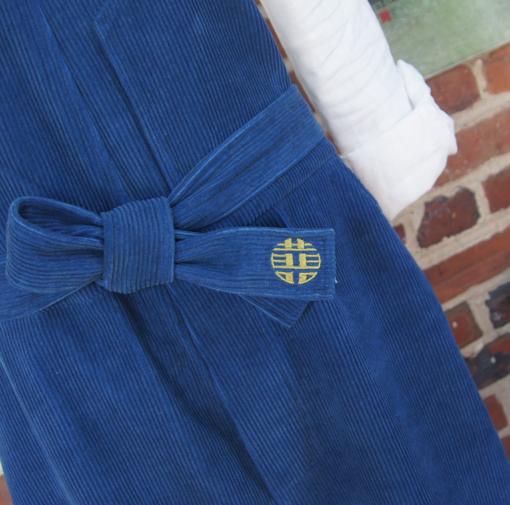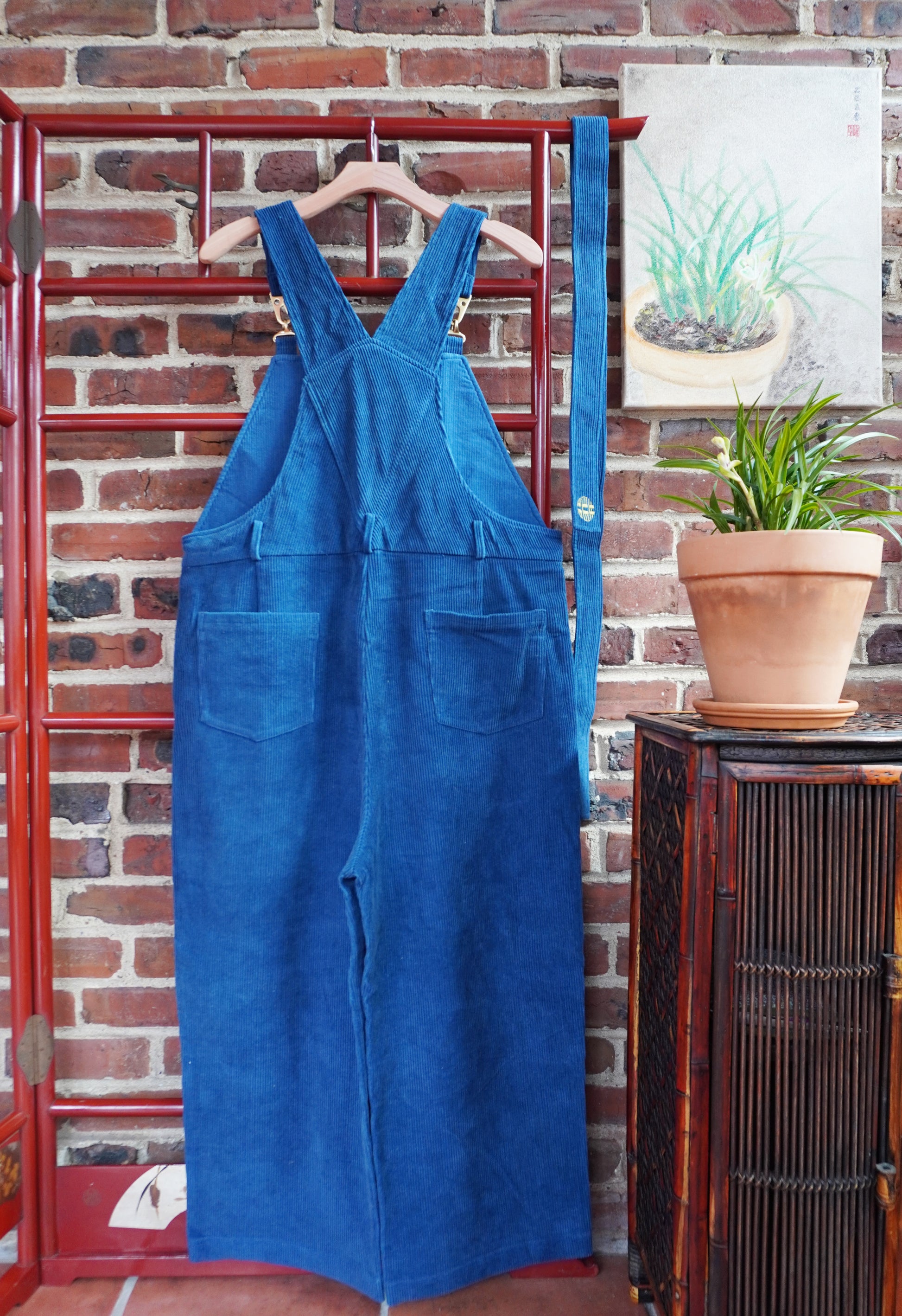 Product: Our plant dyed corduroy overall for women has it all over any overall you have worn before. Plush plant dyed corduroy forms a supremely comfortable piece to wear anywhere doing anything: shopping, gardening, cooking, visiting. Plus, when you are in the mood to feel a little more fitted, you can add the detachable self-fabric belt with double happiness embroidery. Multifunctional, this garment has it over all the overalls you have ever worn before.